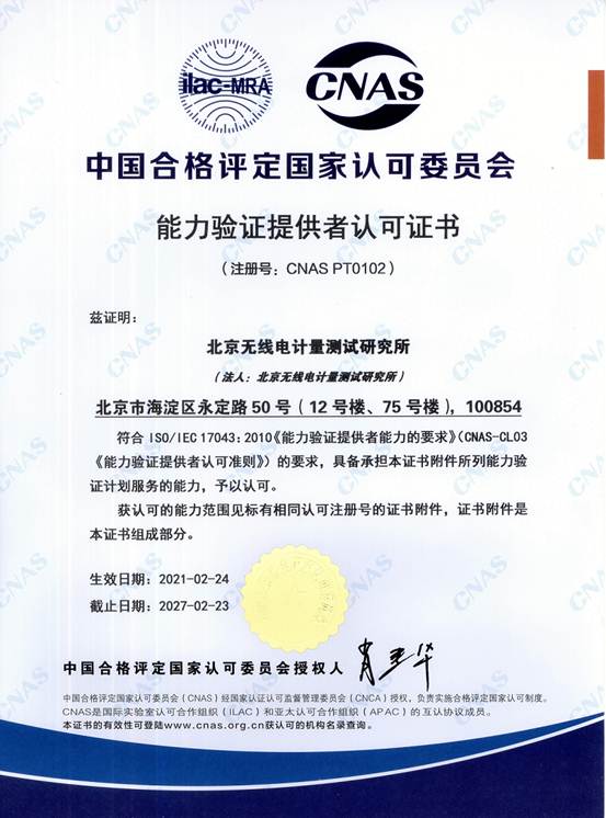 近日,北京無線電計(jì)量測(cè)試研究所通過了中國(guó)合格評(píng)定國(guó)家認(rèn)可委員會(huì)現(xiàn)場(chǎng)評(píng)審,順利取得能力驗(yàn)證提供者認(rèn)可證書。