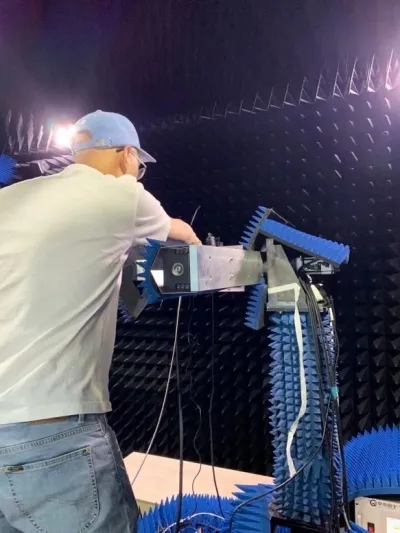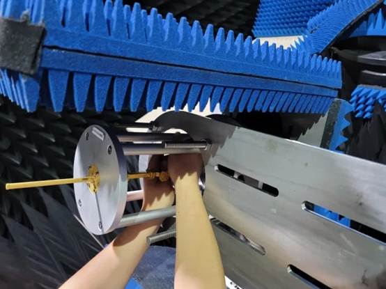 測試中最困難的部分是對天線連接處的調(diào)平工作,毫米波段的天線連接處為了性能,都是通過波導(dǎo)的硬鏈接,波導(dǎo)不能被彎折,因此需要對天線底座進(jìn)行精細(xì)的調(diào)整,以保護饋源的同時保證鏈接質(zhì)量。實驗隊員不畏艱難,在暗室里一絲一絲地擰動天線底座上的四個調(diào)平螺母,盡可能的將底座調(diào)平,以保證鏈接質(zhì)量,汗水浸濕上衣是家常便飯。最終,各個頻點饋源波導(dǎo)的鏈接質(zhì)量均滿足了測試需求,完成全部測試工作。