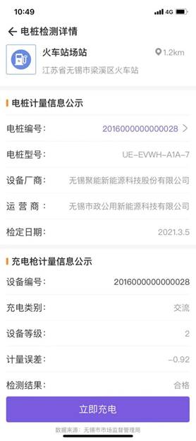 該“電樁計(jì)量”模塊基礎(chǔ)數(shù)據(jù)庫由無錫市檢驗(yàn)檢測認(rèn)證研究院提供,該模塊不但可以查詢無錫地區(qū)充電樁分布和每個充電樁的計(jì)量檢定數(shù)據(jù),還會優(yōu)先將計(jì)量檢定合格的充電樁作為引導(dǎo)充電的對象,可進(jìn)一步規(guī)范電動汽車充電市場公平公正,在方便市民充電選擇的同時促進(jìn)新能源汽車充電設(shè)施產(chǎn)業(yè)的健康有序發(fā)展。這也是落實(shí)江蘇省關(guān)于完善新能源汽車產(chǎn)業(yè)基礎(chǔ)設(shè)施建設(shè)、提升充換電設(shè)施服務(wù)水平的規(guī)劃要求。