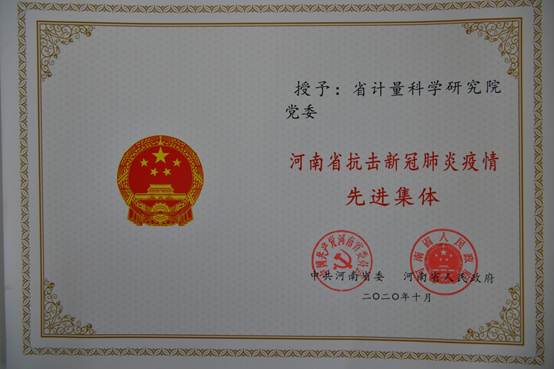 10月21日,河南省抗擊新冠肺炎疫情表彰大會在鄭州隆重舉行。河南省計(jì)量科學(xué)研究院黨委被中共河南省委表彰為:河南省先進(jìn)基層黨組織;被中共河南省委、河南省人民政府表彰為:河南省抗擊新冠肺炎疫情先進(jìn)集體。