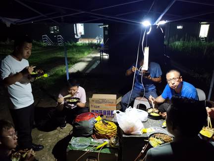 大半年的時間里,團隊輾轉(zhuǎn)國內(nèi)南北三處試驗場,歷經(jīng)寒暑季節(jié)交替。突擊隊曾在陜西某試驗場一呆就是一個半月。每天驅(qū)車往返于住處和試驗場各站點,行程近百公里。每次試驗開始時,隊員們都需要半夜三點集合,雖然此刻大家“饑寒轆轆”,但每個人都堅守各自崗位,確認(rèn)分系統(tǒng)在準(zhǔn)備過程中狀態(tài)正常;夏季,南方野外“標(biāo)配”的高溫與蚊蟲,又為夜間的調(diào)試工作增添了幾分艱辛。當(dāng)?shù)厝朔Q