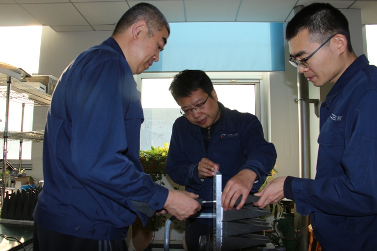 這已經(jīng)記不清是第幾個(gè)星載輻射計(jì)定標(biāo)的日子了,靜謐的夜晚,人們都沉浸在甜美的睡夢(mèng)中,而在真空定標(biāo)測試間里,定標(biāo)試驗(yàn)正在熱火朝天地進(jìn)行著。定標(biāo)試驗(yàn)的控溫難度高,四名實(shí)驗(yàn)人員中兩名是剛?cè)肼毜摹靶氯恕?,“前輩”只能一邊試?yàn)一邊傳授定標(biāo)控溫方法和心得,很快大家都熟練掌握技巧,每個(gè)人都互相交流分享小心得,使試驗(yàn)溫度能更快度更準(zhǔn)確達(dá)到,節(jié)省很多寶貴的時(shí)間,獲得客戶的好評(píng)。